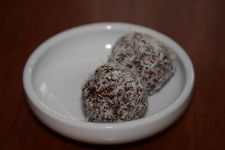Vegan and almost raw chocolate balls. Why almost? I am out of raw chocolate powder. I didn't let it stop me and used regular cacao powder instead. If you can get your hands on raw cacao powder, by all means go for it. It is an excellent source of manganese and iron.